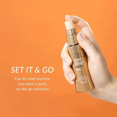 With your eyes closed, spray 4-6 inches away from face, neck and décolletage. Can be used as part of your morning/evening routine or anytime throughout the day to refresh skin. Can be applied as a finishing spray over makeup. For best results, use with other DHC Super Collagen Collection products.