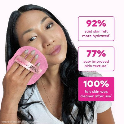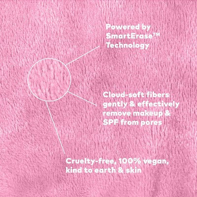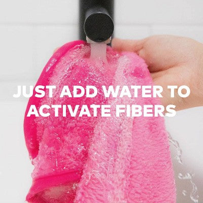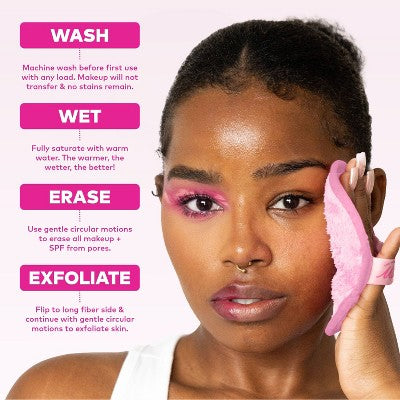 Erase all makeup with JUST WATER™ including waterproof + SPF. Our patented, water-activated, cloud-soft fibers gently & easily remove all makeup & sunscreen from pores. 2 in 1 benefit: one side erases makeup & one side exfoliates skin.
