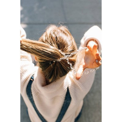 TELETIES are the ultimate replacement to the traditional hair tie. They hold strong, hurt less and look great in your hair and on your wrists. With the variety of colors and styles available, they are the perfect accessory for any outfit or occasion. TELETIES have a unique spiral design made of firm, yet flexible material. This creates a strong-grip that locks hair in place with less slipping than traditional ties. Their firm yet flexible form provides greater hair support, reducing head and scalp tension. TELETIES spiral form and smooth surface mean less direct contact with your hair for an easier, smoother removal. We recommend the large size for medium to thick hair.